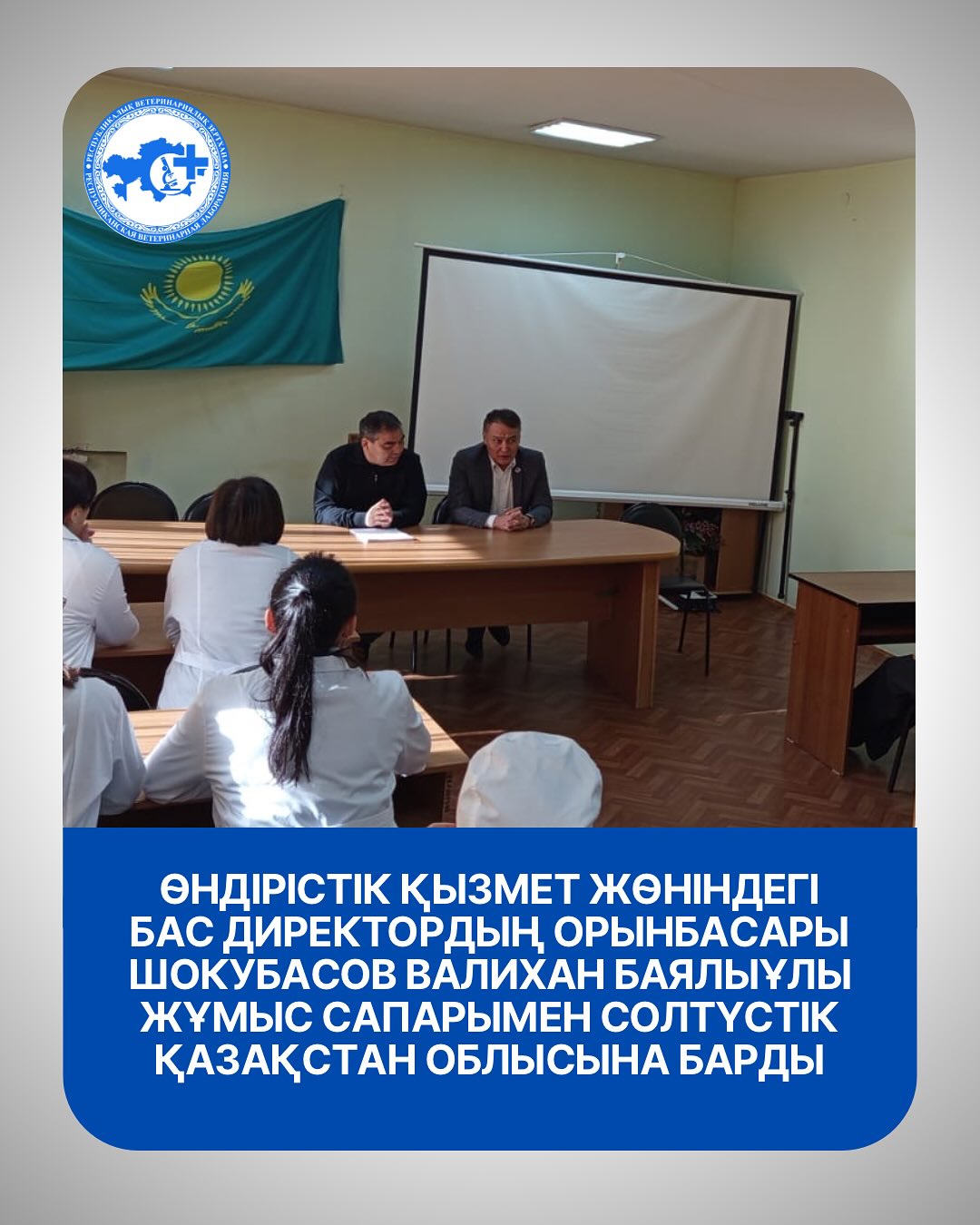 Республикалық ветеринариялық зертхананың бас директоры Темірхан Амантайұлы Елшибаевтың тапсырмасына сәйкес Валихан Баялыұлы филиалдар мен аудандық бөлімшелердің эпизоотиялық тұрақтылықты қамтамасыз ету және елдің азық-түлік қауіпсіздігін нығайту ісіндегі жүйелі жұмысының маңыздылығын атап өтіп, қызметкерлердің кәсіби біліктілігін үздіксіз арттырудың қажеттілігін ерекше атап өтті.